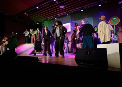 Vom 1. bis 3. Juli stellten wir unseren Mitschüler:innen, Freunden und Verwandten unser Musical „Letzte Schanze!“ vor. In einem emotionalen Auf und Ab behandelten wir die Besetzung der Roten Flora in der Schanze unserer Heimatstadt – nach dem Vorbild des weltbekannten Broadway Musicals „Rent“. Die Geschichte spielt in den Achtzigern und folgt den Mitbewohnern und Freunden Mark, Tom und Rüdiger, die sich in einer prekären Situation befinden und sich zwischen Kunst und Komfort entscheiden müssen. Während die drei ihre eigenen Komplikationen haben, kämpft der Stadtteil um seine Eigenständigkeit. Investoren wollen aus der Flora ein Musicaltheater machen, wogegen sich die Bewohner:innen der Schanze wehren, um das Vive Bohème am Leben zu erhalten.